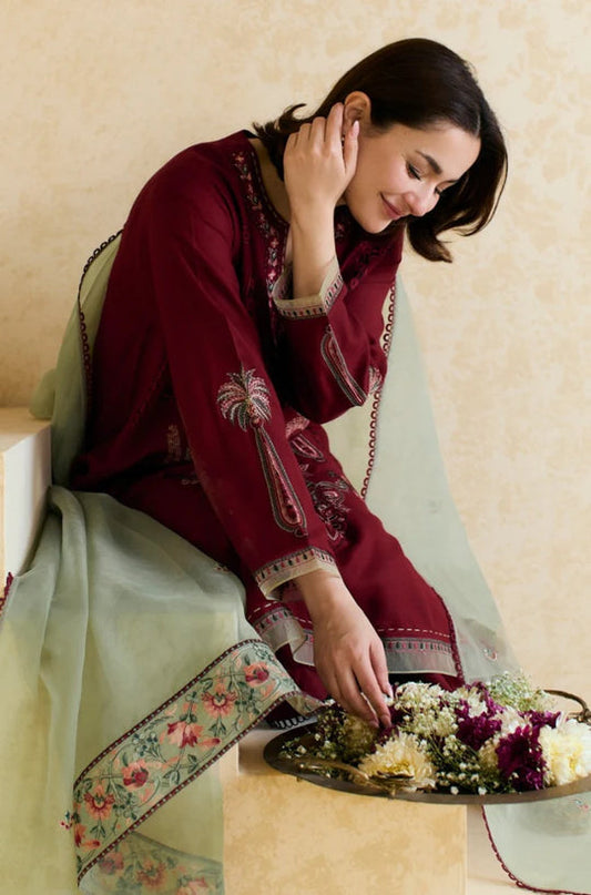 3PC-Printed Lawn Zarri Shirt With Voile Printed Dupatta-1522